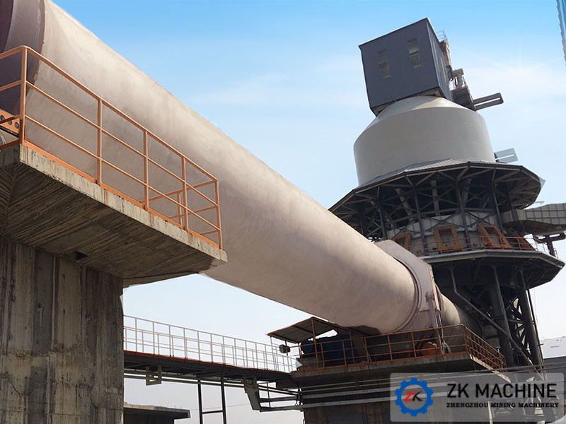 The limestone is preheated by the high-temperature flue gas of the preheater andenters the rotary kiln body through the transfer chute. The fuel is injectedinto the kiln body from the kiln head by the burner for combustion. Due to theinclination and slow rotation of the rotary kiln cylinder, the material rollsalong the cylinder and moves toward the lower end of the kiln head. Afterfurther preheating, decomposition, high temperature firing and other processesin the kiln, it is calcined into quicklime, and then enters the vertical coolerfrom the lower part of the kiln head discharge device.