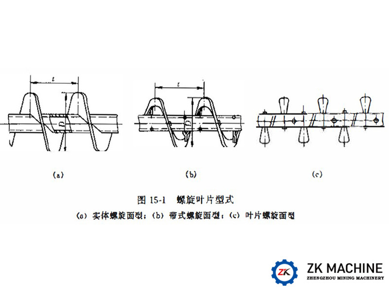There are three types of spiral blades for spiral conveyors: solid spiral surface type, belt spiral surface type and blade spiral surface type. The solid spiral surface is called S method, and its spiral pitch GX type is 0.8 times the blade diameter, which is suitable for conveying powdery and granular materials. The belt spiral surface is also known as the D method. Its spiral pitch is the same as the diameter of the spiral blade. It is suitable for conveying powdery and small pieces of material. The helical surface of the blade type is rarely used. It is mainly used for conveying materials with high viscosity and compressibility. During the conveying process, the stirring and mixing processes are completed at the same time. The spiral pitch is about 1.2 times the diameter of the helical blade.