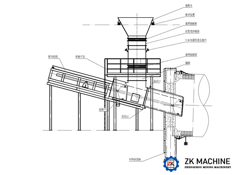 Due to the variety of components contained in the garbage, the garbage enters the furnace and burns, and a special feeding mechanism is needed. The feeding mechanism is mainly composed of a weighing silo, a hydraulic plug valve, a buffer silo, a pushing mechanism, a water-cooled jacket, etc. Composition, a hydraulic plug-in valve is designed at the discharge port of the weighing bin. A cavity is formed between the two hydraulic plug-in valves. The two plug-in valves cannot be opened at the same time. When the upper plug-in valve is opened, garbage materials fall down When the weight loss of the weighing bin sensor reaches the set requirement, the upper hydraulic interposer valve is closed, the lower hydraulic interposer valve is opened, the garbage material falls to the front section of the pusher of the pushing mechanism, and the hydraulic cylinder pushes the pusher to push the garbage Burn it in the kiln. The water-cooled jacket part needs to be inserted into the combustion furnace, the material is made of heat-resistant steel, and the inside is cooled by circulating water.
