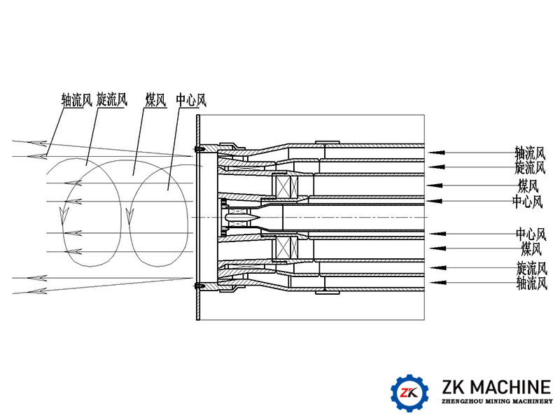 The fuel is sprayed out from the fuel channel at acertain diffusion angle, and it is transmitted to a relatively high momentumand momentum moment by the combustion air outside. The swirling wind mixes withthe injected fuel and spirals forward at a high speed, and the axial wind thatis ejected at a high speed. The beam meets. The insertion of the axial windbeam further enhances the mixing of fuel and wind (including the surroundingsecondary air), and can adjust the degree of flame divergence. The length andthickness of the flame can be adjusted as required to achieve the desired flameshape. The role of the central wind is to promote the combustion of a smallamount of fuel and CO in the central part, so that the combustion is moresufficient, and plays a role in steady flow. Because of this combustionmechanism and the high speed of the cyclone and axial winds, the combustion isvery rapid and complete.